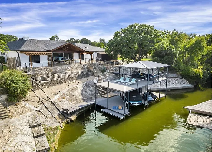 During the stay at Luxury Lakefront Retreat, Private Dock And Fire Pit villa, guests can explore popular spots like Hood County Jail and Historical Museum and Lake Granbury Marina, which are located about a 10-minute drive from the property and 1.1 km away, respectively.